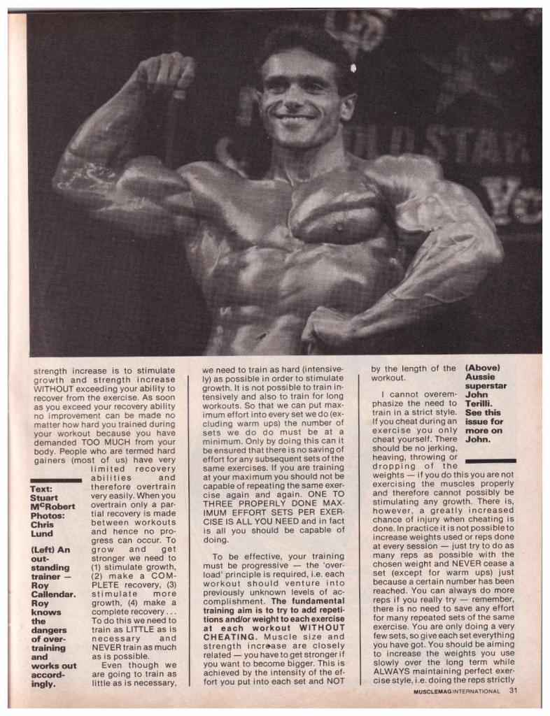 Well it maybe due to overtraining… This article explores how less may ultimately lead to more.Source: MuscleMag International (July 1984) Page #30 - MuscleMag International (July 1984) Page #31 - MuscleMag International (July 1984)