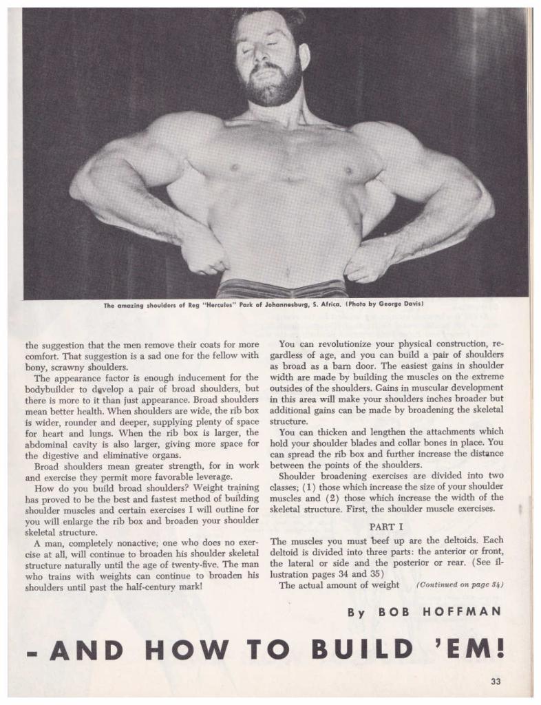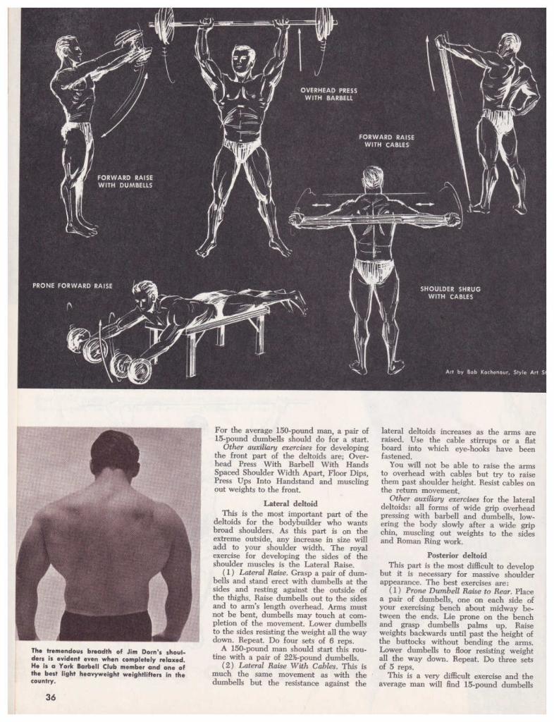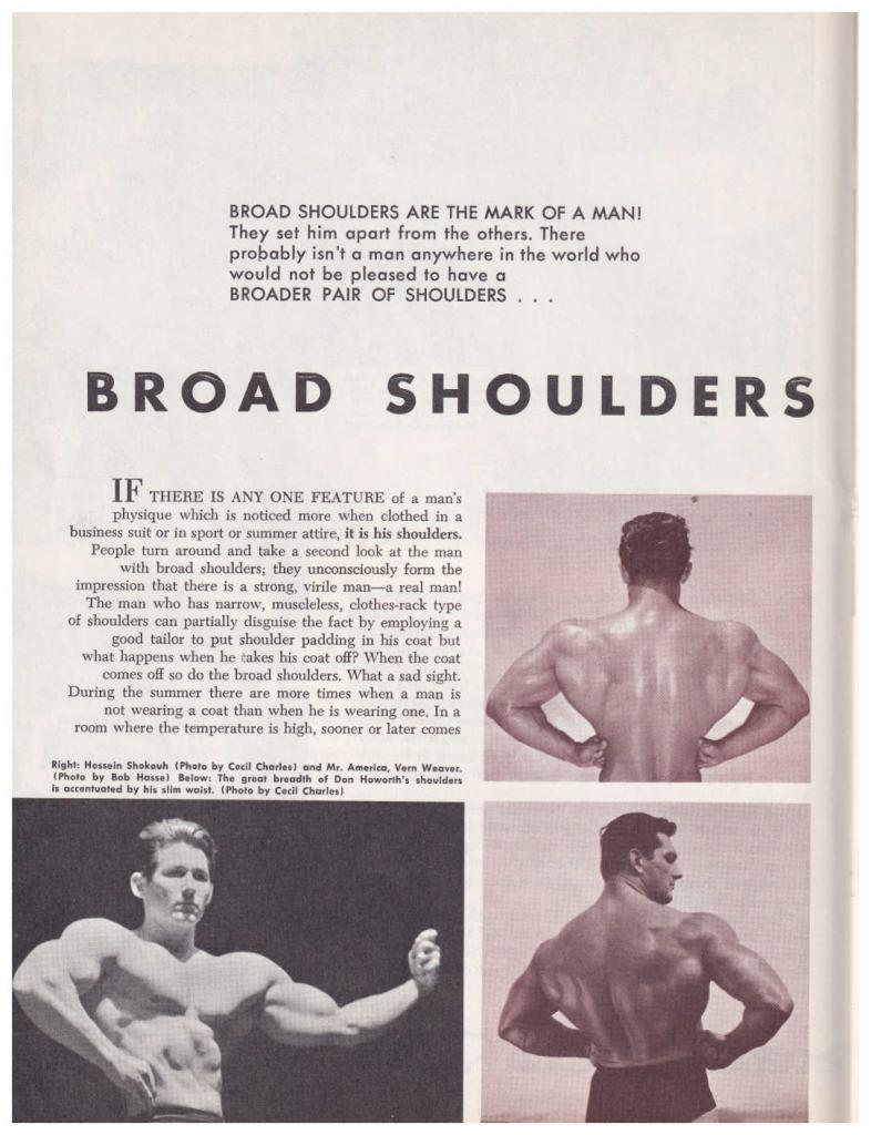 Broad shoulders are the mark of a man! This article provides guidance on how to develop a pair of shoulders as broad as a barn door.
