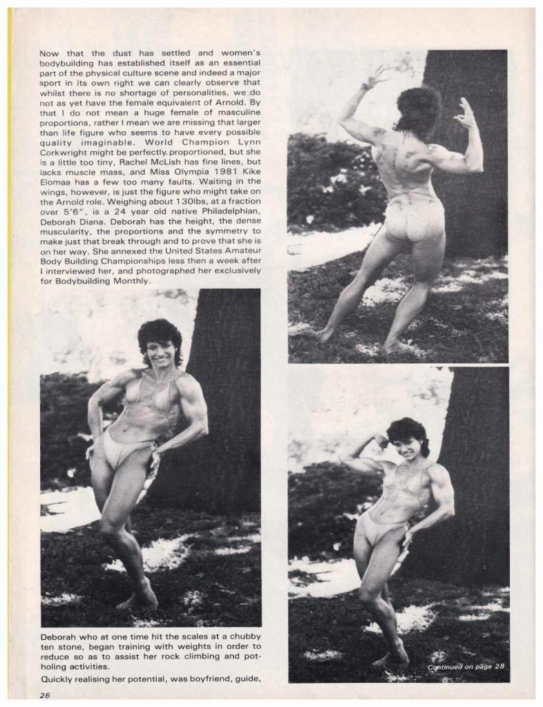 A great feature article on female bodybuilder Deborah Diana.  This feature is written around the time of Deborah’s success at the 1981 USA Amateur Championships.