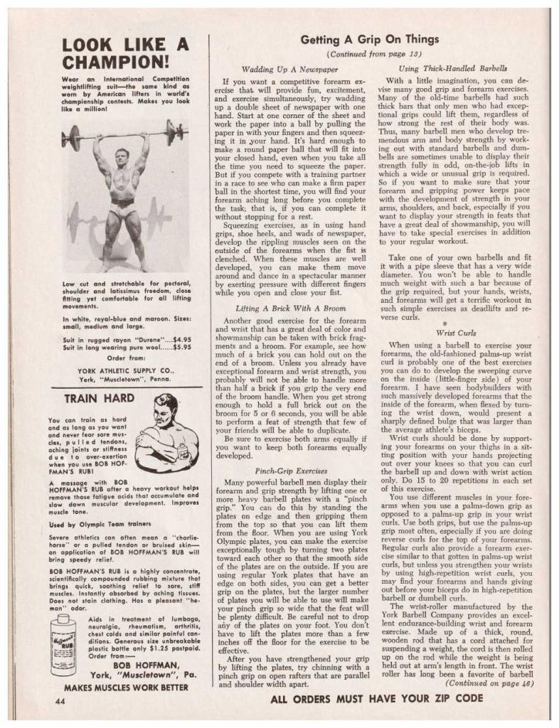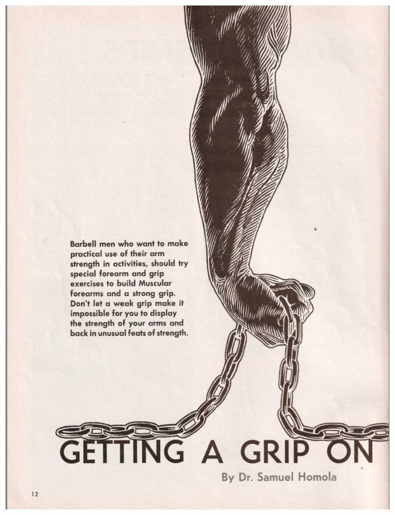 A great article on grip and forearm training for improved back and arm strength.Source: Muscular Development (April 1967) Page #12 - Muscular Development (April 1967) Page #13 - Muscular Development (April 1967) Page #44 - Muscular Development (April 1967) Page #46 - Muscular Development (April 1967)