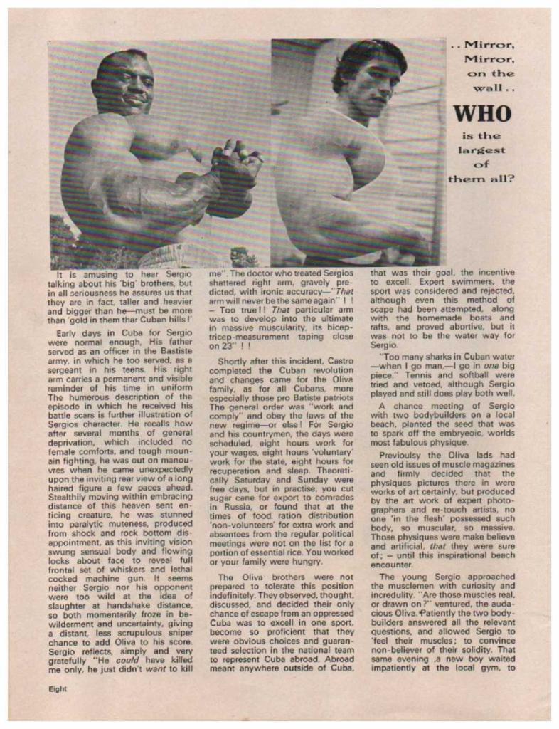The first of a multiple part feature on the magnificent Sergio Oliva. It focuses on his early years in Cuba. A fascinating read with a great deal of detail on “The Myth” of Professional Bodybuilding.